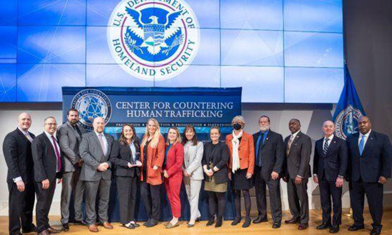 CHIPS Center—Two medical professionals from Children’s of Alabama were recognized by the U.S. Department of Homeland Security (DHS) for their work combating human trafficking. Kara Huls, M.D., and Ashley Hodges, Ph.D., CRNP, were part of a group that received the inaugural Outstanding Victim Protection in Countering Human Trafficking Award from the Center for Countering Human Trafficking (CCHT) within DHS. The recognition was part of the newly established DHS Annual Awards in Countering Human Trafficking, which recognize major counter-human-trafficking efforts and contributions by department personnel. CCHT recognized Huls, Hodges and other members of Birmingham’s Multidisciplinary Team, which includes law enforcement officers, judicial officials and other service providers working together to improve the detection and care of trafficking survivors while increasing accountability for perpetrators. The team’s work has been recognized as a national model for addressing child trafficking.